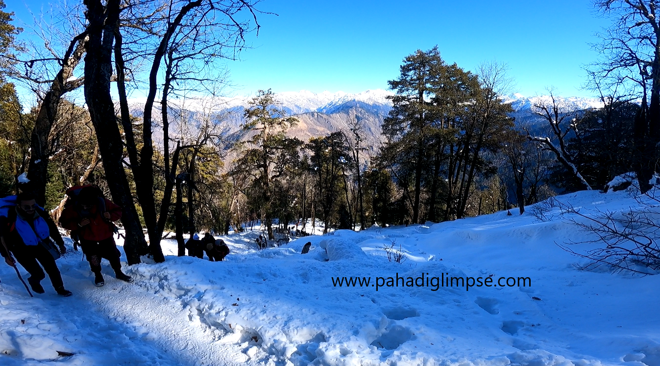 > चौथे दिन बेस कैंप से वापस सांकरी गाँव पहुंचा जा सकता है।