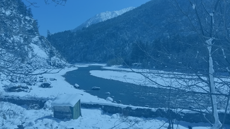 मार्च माह में चर्चित पर्यटक स्थल हर्षिल का नजारा
